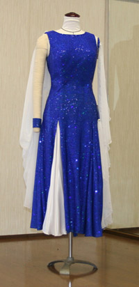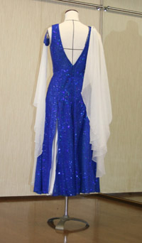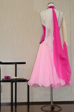 ボディー部分をアシメトリーに裁断したドレスです。左右対称でないことによって動きが出るのですが、