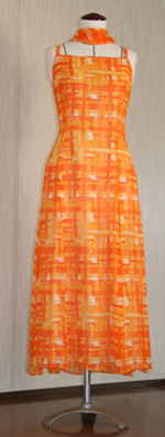 画像:オレンジのシルクシフォンで、ふんわりと軽いドレスです。